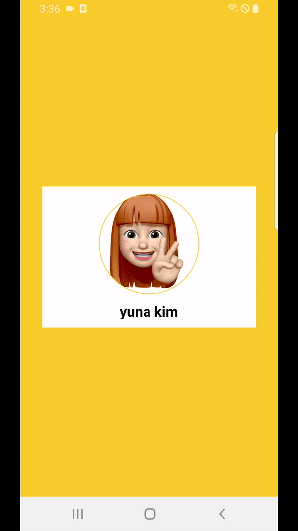 Animation ํ์ ํ๋ฉด์ธ MainActivity์ transitionName๊ณผ ๋์ผํ View๋ฅผ ๊ตฌ์ฑํด์ฃผ์์ต๋๋ค.