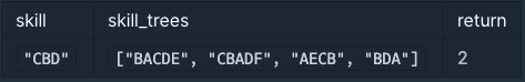 ์ ํ ์คํฌ ์์ skill๊ณผ ์ ์ ๋ค์ด ๋ง๋ ์คํฌํธ๋ฆฌ1๋ฅผ ๋ด์ ๋ฐฐ์ด skill_trees๊ฐ ๋งค๊ฐ๋ณ์๋ก ์ฃผ์ด์ง ๋, ๊ฐ๋ฅํ ์คํฌํธ๋ฆฌ ๊ฐ์๋ฅผ return ํ๋ solution ํจ์๋ฅผ ์์ฑํด์ฃผ์ธ์.