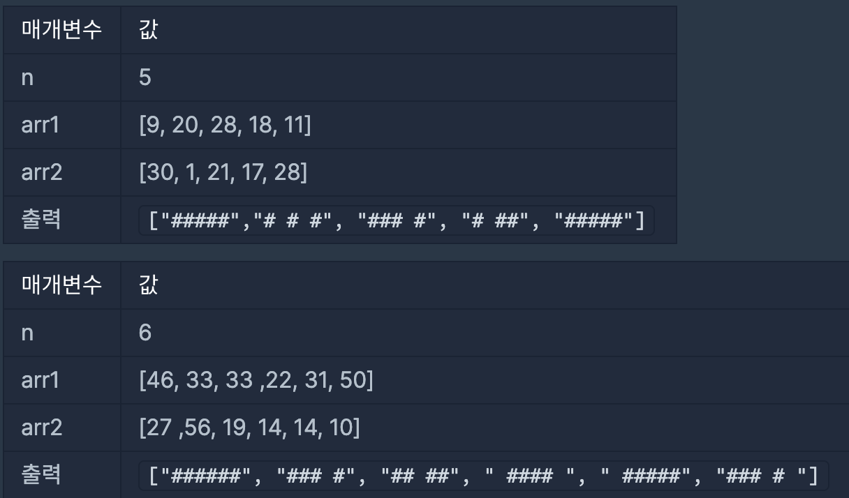μ λ ₯μΌλ‘ μ§λμ ν λ³ ν¬κΈ° n κ³Ό 2κ°μ μ μ λ°°μ΄ arr1, arr2κ° λ€μ΄μ¨λ€.