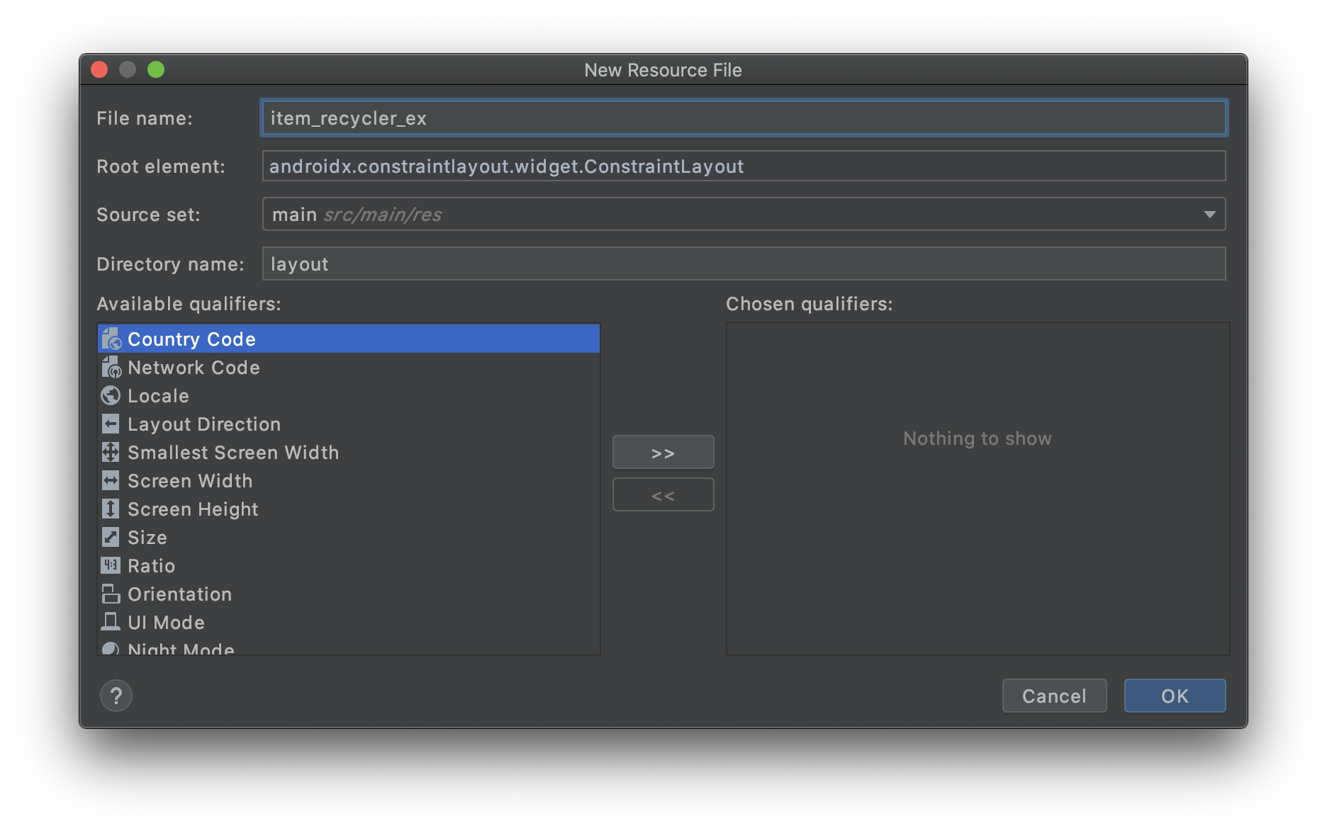 layout -> New -> Layout Resource File