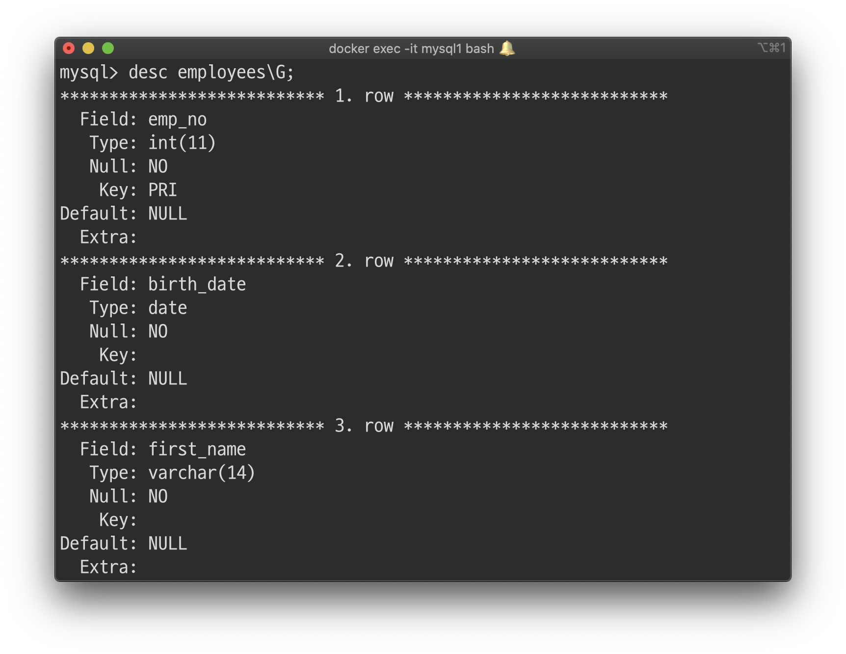 table์ create ์ฟผ๋ฆฌ๋ฅผ ํ์ธํ๋ ๊ฒฝ์ฐ, \G ์ต์ ์ ์ด์ฉํ๋ฉด ๊ฒฐ๊ณผ๊ฐ์ ํจ์ฌ ๋ณด๊ธฐ ํธํ๊ฒ ์ถ๋ ฅํ์ค ์ ์์ต๋๋ค.