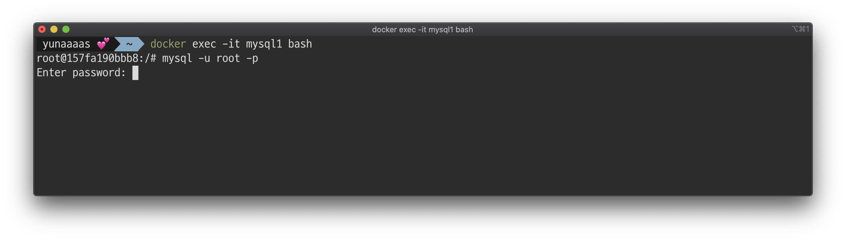 root@157fa190bbb8: mysql -u root -p