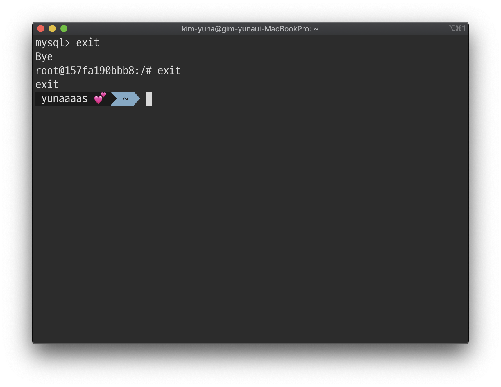 Docker MySQL ํด๋น ์ปจํ ์ด๋๋ฅผ ์์ ์ข ๋ฃํ๊ณ ์ถ๋ค๋ฉด? exit ๋ช ๋ น์ด๋ฅผ ํตํด ์ข ๋ฃํ์ค ์ ์์ต๋๋ค.