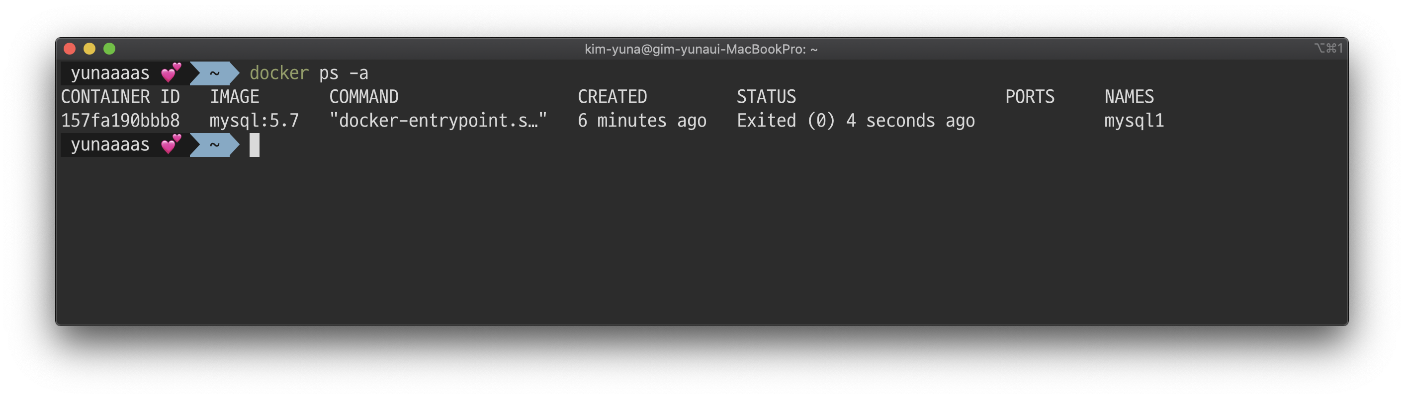 ์์ ๊ฐ์ด ๋ง์ฝ MySQL ์คํ ์ ํด๋น ์ปจํ ์ด๋์ STATUS๊ฐ Exited ๋ผ๋ฉด ?!