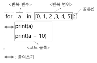 •Python에서는 콜론 (:)과 들여쓰기로 코드의 구조를 결정함